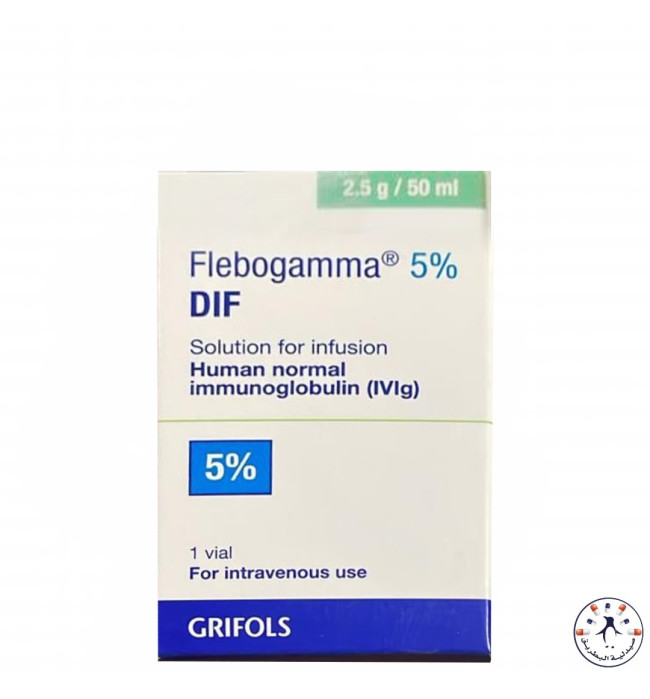 فيلبوجاما 5% DIF (Flebogamma 5% DIF) هو محلول جاهز للحقن الوريدي يحتوي على غلوبيولين مناعي بشري (Immune Globulin Intravenous ‑ Human) بتركيز 50 ملجم/مل. يُستخدم لتعويض الأجسام المضادة لدى المرضى الذين يعانون من ضعف المناعة (الخلقي أو المكتسب)، مثل نقص المناعة الأولي والالتهابات المتكررة.