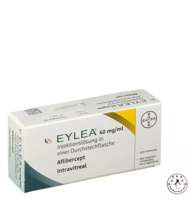 يُستخدم Eylea لعلاج أمراض الشبكية المرتبطة بتسرّب الأوعية الدموية مثل التنكّس البقعي المرتبط بالعمر واعتلال الشبكية السكري. يحتوي على المادة الفعّالة Aflibercept بتركيز 40 ملجم/مل ويُعطى كحقن داخل الجسم الزجاجي للعين.